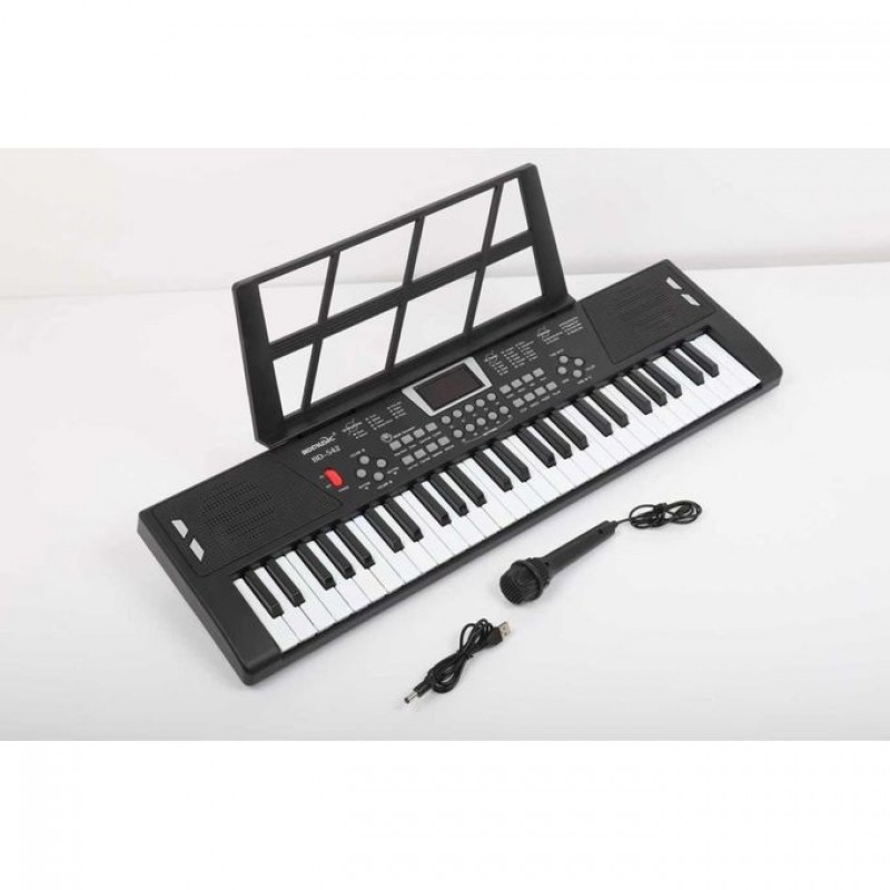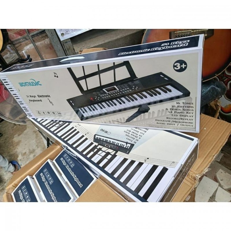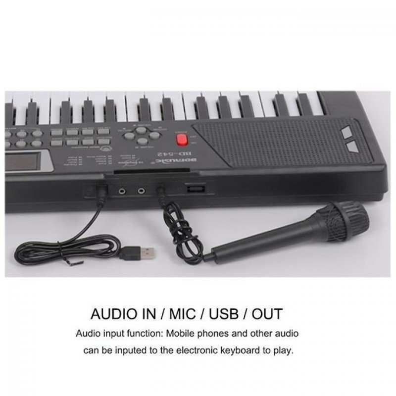 This is a mini Lighting 54keys children piano keyboard. It can be operated by batteries( unscrew the battery compartment at the back side) or DC Adapter (the batteries are not Included) Features: