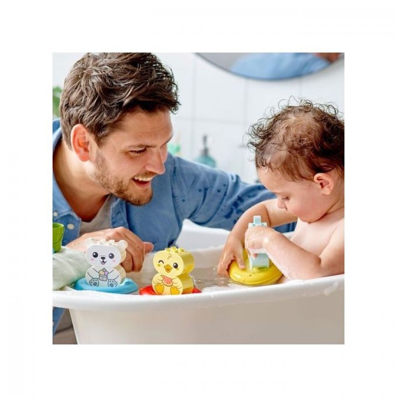 LEGO® DUPLO® My First Bath Time Fun: Floating Animal Train (10965) is an easy-to-clean developmental bath toy for preschoolers aged 18 months and up.